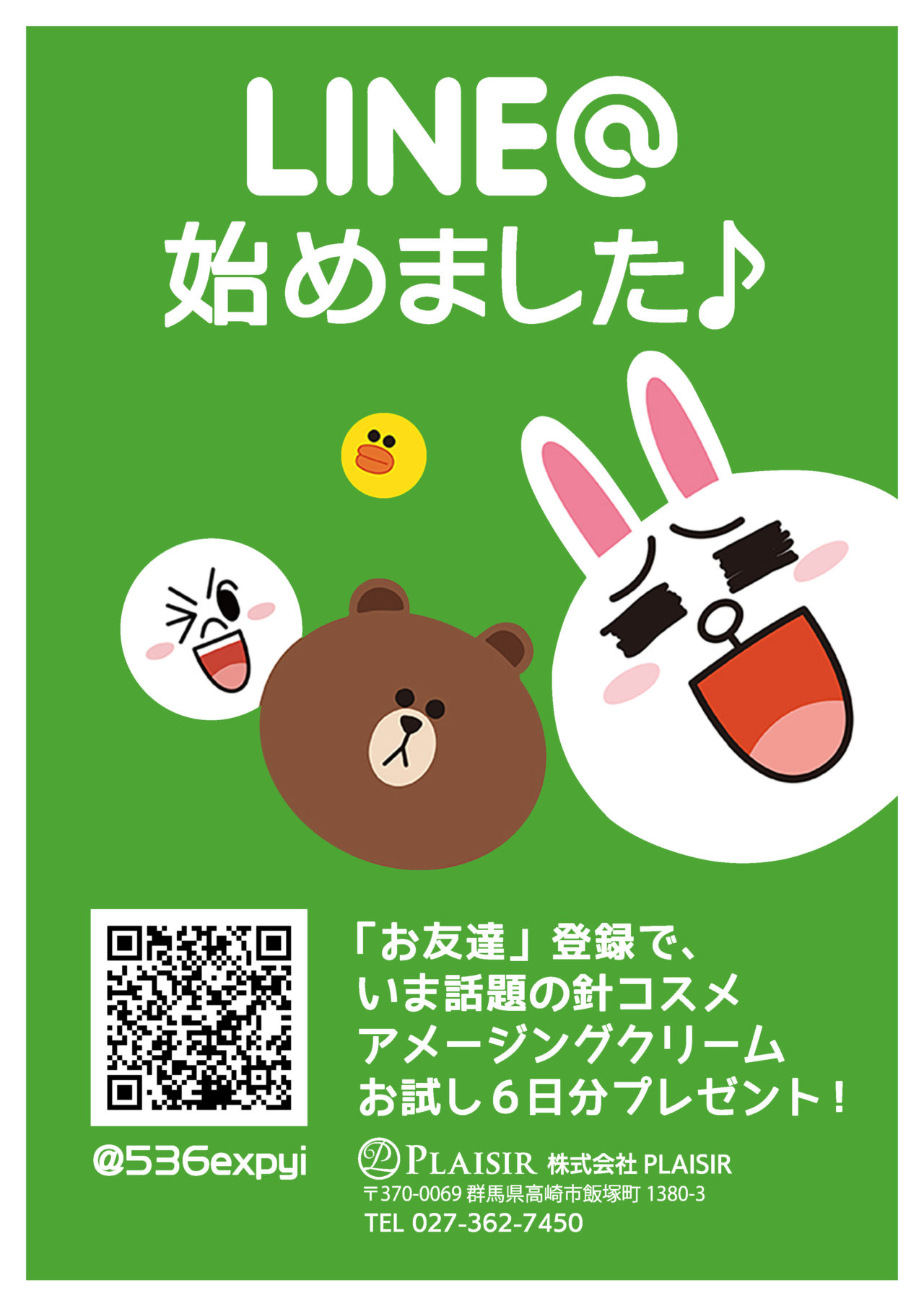 PLAISIR公式LINE始めました♫😊