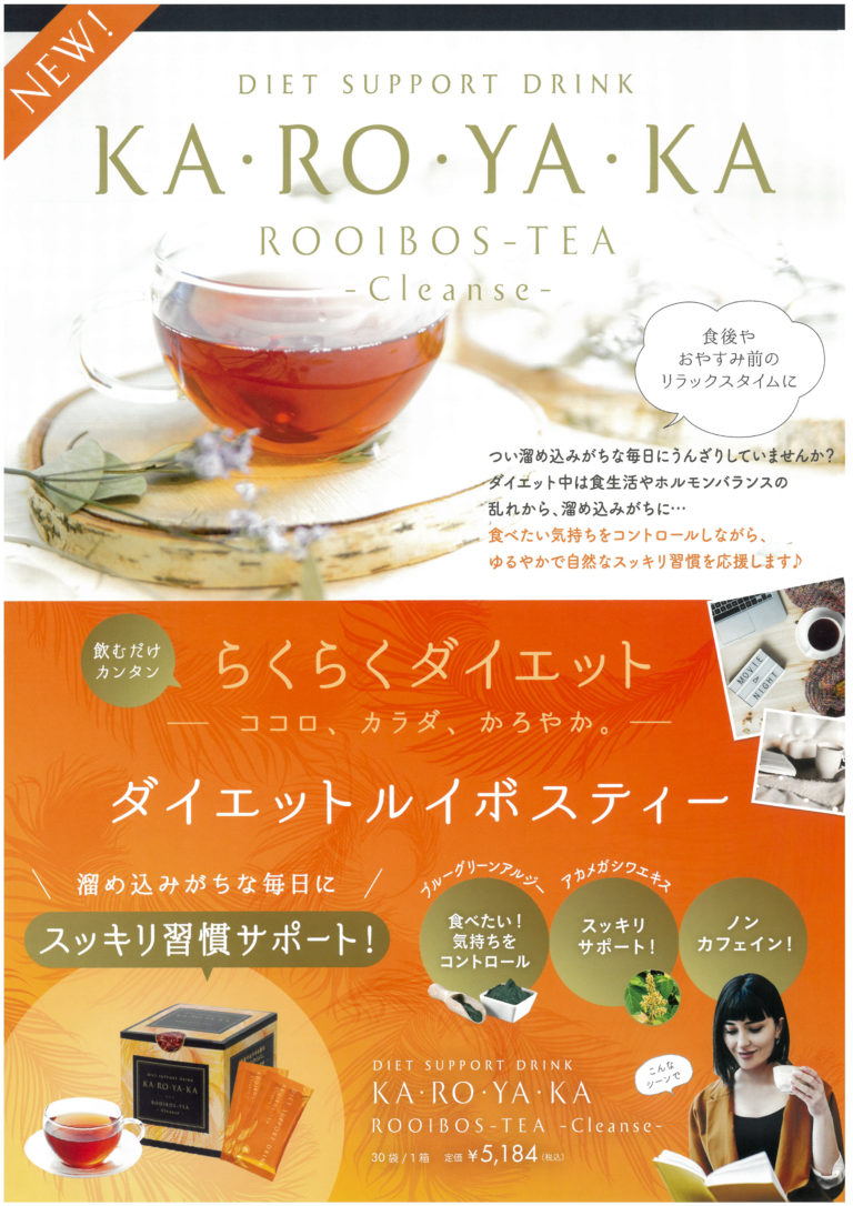 以前にもご紹介させて頂いた太ってしまう様々な原因にアプローチするダイエットサポートドリンク【KA•RO•YA•KA】に新しく《ルイボスティー》が仲間入り😊💖💖 この暑い時期😵☀️飲みやすいコーヒーや、玄米茶🍵で気軽に水分補給😊ルイボスティーも新しく仲間入り💖お好みのテイストでこの夏飲みながら簡単にダイエットできちゃいます😁✨ 《KA•RO•YA•KAルイボスティーのすごいところ😍》①ブルーグリーン […]